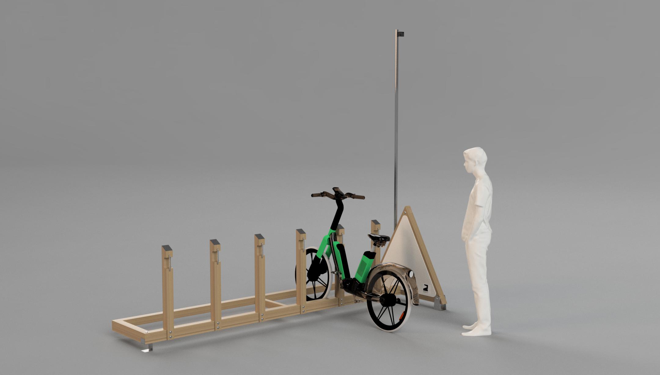 AMEBIKE 1×4 Módulo autónomo de generación de energía eléctrica fotovoltaica y estación de carga de bicicletas eléctricas; estructura de…