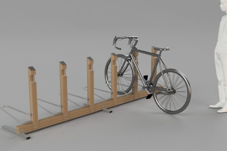 WBR 01 Soporte íntegramente ejecutado en madera, permite máxima flexibilidad en cuanto a la colocación de las bicicletas, que pueden apoyarse a un lado o al otro de cada poste Características técnicas: