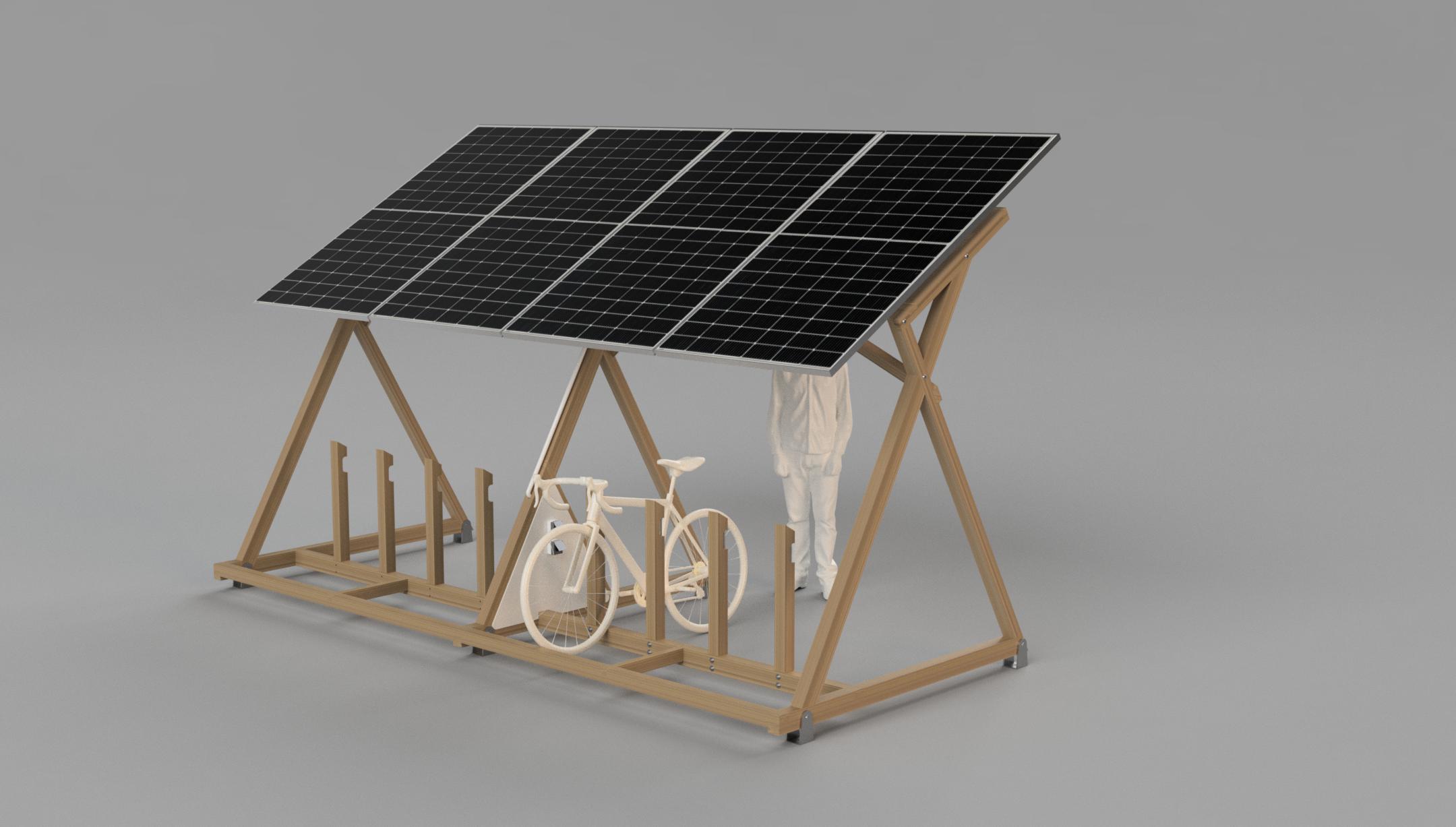 Aparcamiento seguro de bicicletas, apto para integrar un sistema de control y gestión de los aparcamientos, mediante cámara de video y conexionado a panel de control; permite la colocación de tomas de fuerza para la carga de bicicletas eléctricas.