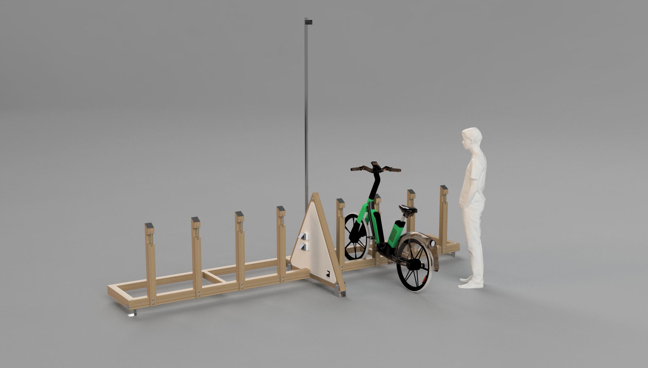 • Dotado de 6 plazas de aparcamiento para bicicletas integradas en un diseño único