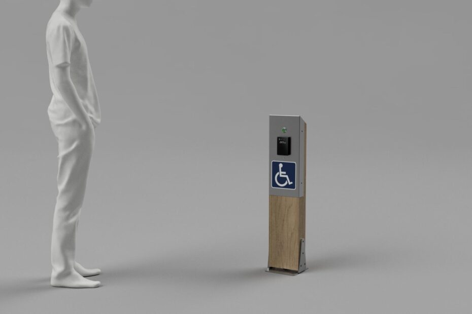 WBOL 02 Poste de madera con cabeza metálica diseñado para alojar un teclado numérico, un lector, un indicador LED y una cámara.alojar un radar de proximidad y un indicador LED. Características técnicas: